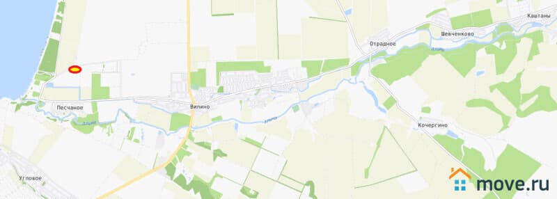 Дом расположен в 900 м от моря, 1000 м до п. Песчаное, 3700 м до п. Вилино.