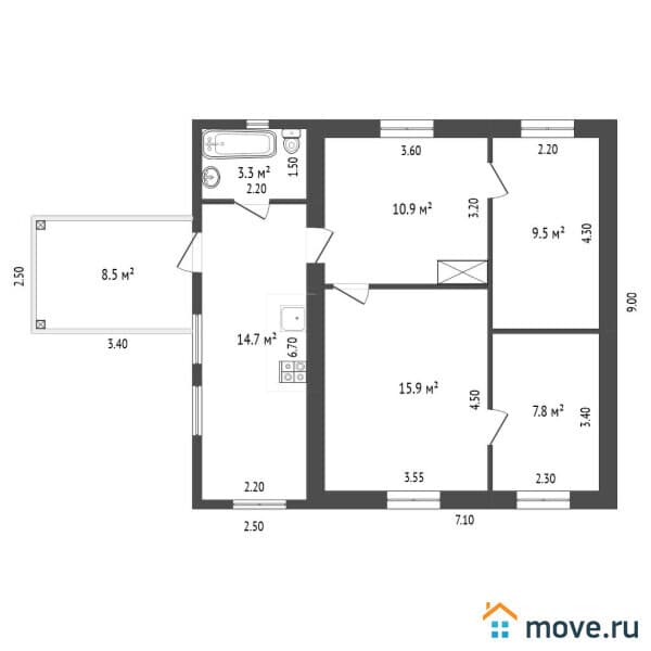 Площадь дома – 62,8 м?, участка – 10,7 соток.