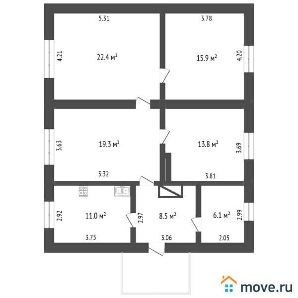Площадь дома – 97 кв. м, земельного участка – 8 соток.