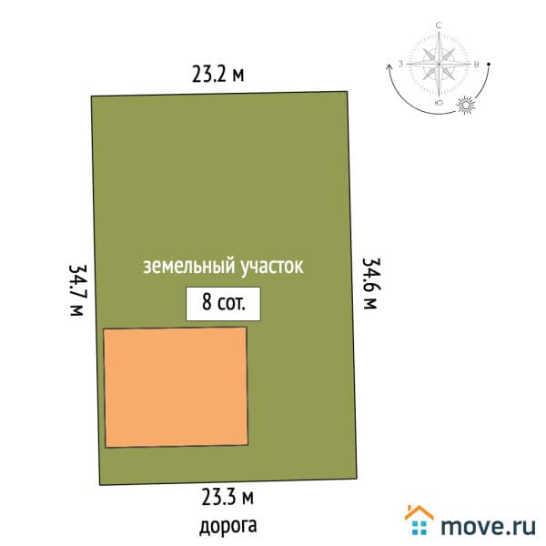 Земельный участок в 8 соток предоставляет достаточно пространства для создания собственного садового уголка, огорода или зоны отдыха на свежем воздухе.