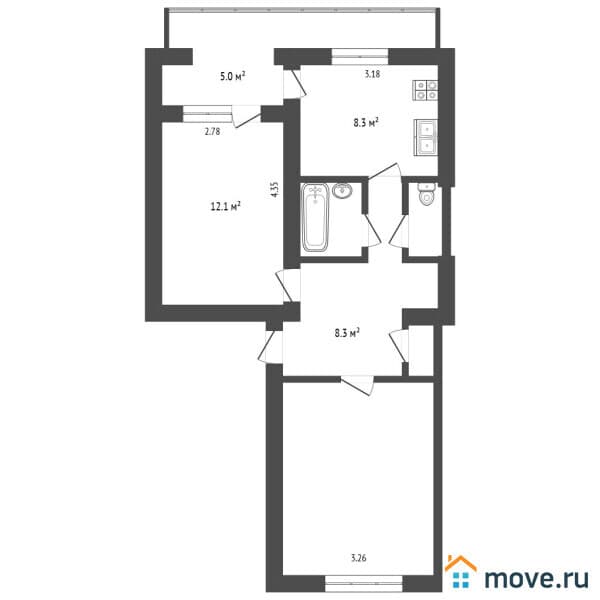 ?Просторный балкон и лоджия застеклённые — дополнительные места для отдыха или хранения.