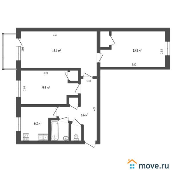 ?Площадь квартиры – 59,9 кв.м.