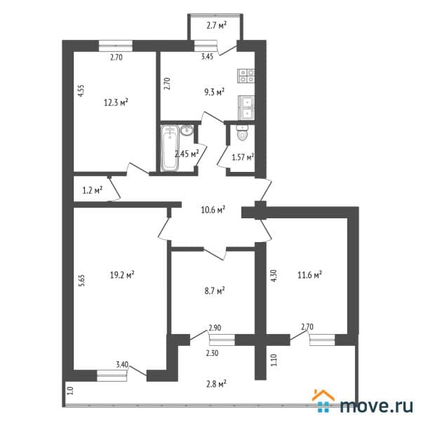 Планировка – распашонка (расположение комнат по обе стороны коридора напротив друг друга).