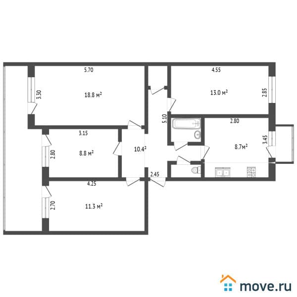 Площадь – 77,2 кв. м.