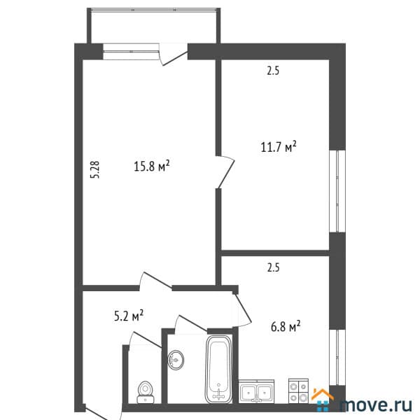 В квартире: 2 комнаты жилые комнаты, кухня, санузел, прихожая.