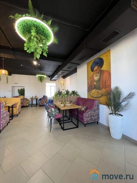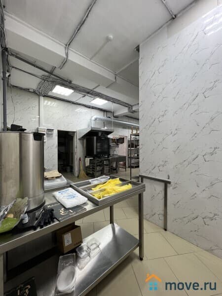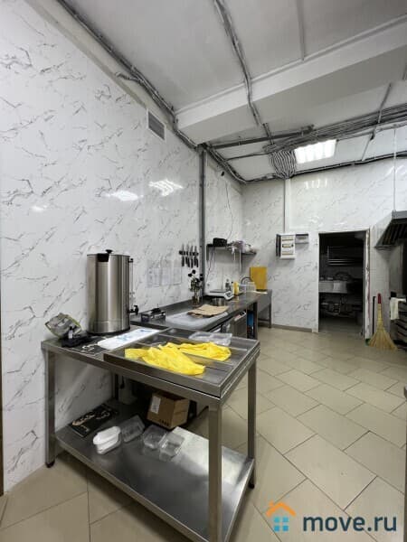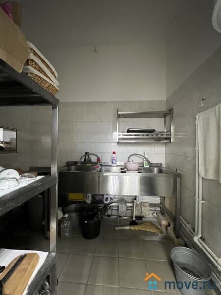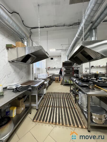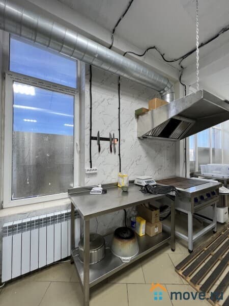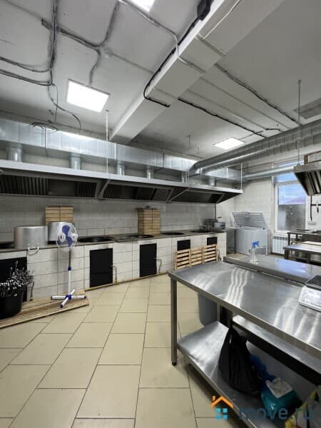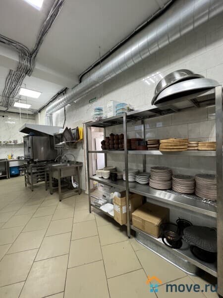 Кухня - укомплектована полностью профессиональным оборудованием и техникой, всем необходимым для работы: электроплиты, духовые шкафы, несколько печей с чанами для приготовления плова, шашлыка, холодильники, оборудование для мясопереработки, кухонные стеллажи и производственные столы из нержавейки, моечные ванны. Кухня оборудована вытяжными зонами для вентиляции.