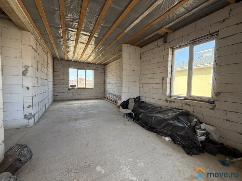 - Цоколь ж/б, колонны - ж/б; стены – газобетон толщиной 300мм, смонтирован на клей, утеплён минеральной ватой 50 мм.; наружная отделка фасада – декоративная штукатурка; окна – теплый трехслойный мультифункциональный стеклопакет; кровля - метало черепица, цвет графит, матовая. При строительстве использовались качественные материалы.