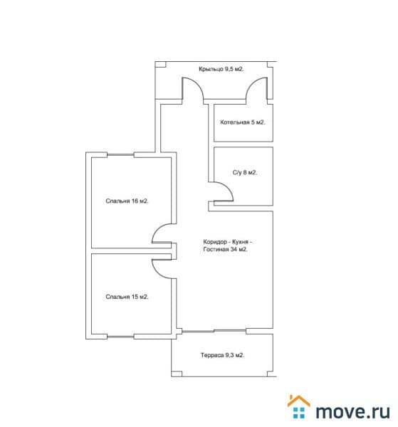 - Коридор, Просторная кухня, Гостиная с выходом на террасу (34 м2)