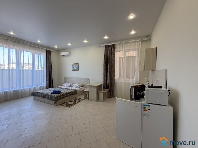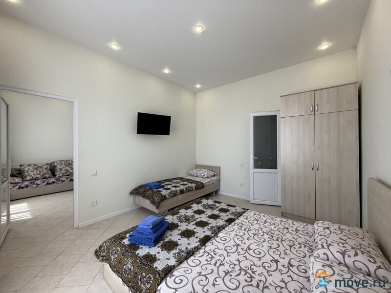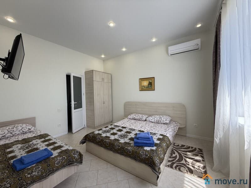 Четыре номера для сдачи, общей площадью 94,9 м2, строение – одноэтажное, номера площадью 22,3/21,5/22,2/24,3м2, укомплектованы мебелью и техникой: кондиционер, телевизор, холодильник, санузел, душ, WI-FI.