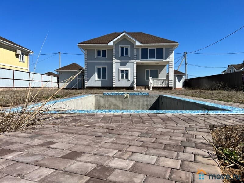 Во дворе есть бассейн: 6,5х3.5 м и глубина 1.7 м. Зона барбекю с беседкой 12 м?. Гараж 22 м? с подъемной роллетой. Домик хоз. назначения под ним канализация - септик 20 куб.