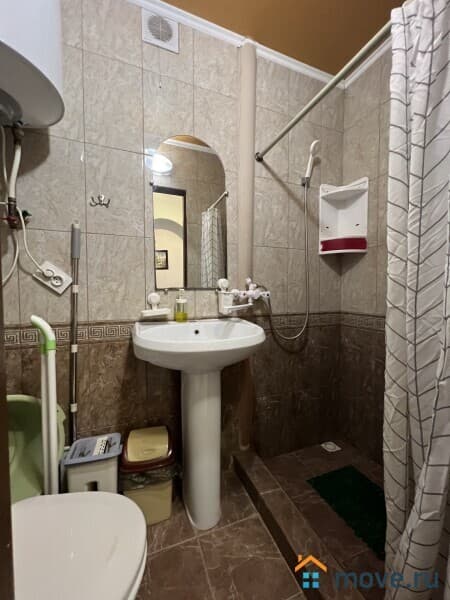 Строения общей площадью 115м2, пять квартир (из них - две двухкомнатных и три однокомнатных), каждая с удобствами, бойлерами, кондиционерами, отоплением (автономное, газовые котлы). В двух однокомнатных студиях газа нет, но возможно завести.