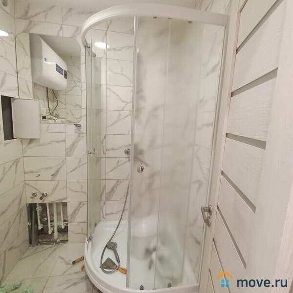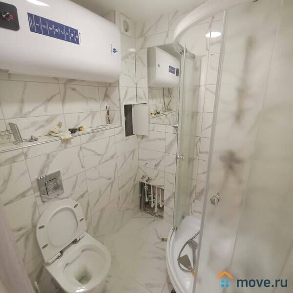 Совмещенный санузел выполнен с использованием качественных материалов, на горячую воду установлен бойлер. Центральное отопление, кондиционер. Окна выходят во двор, поэтому в квартире всегда тихо.