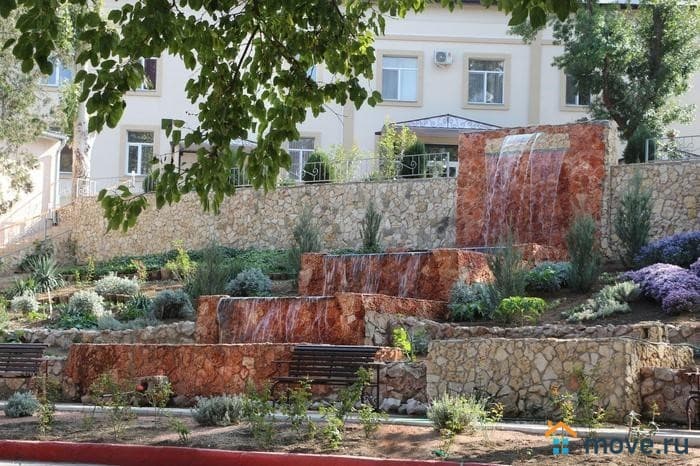 Собственный ресторан на 50 мест и благоустроенная территория позволяют использовать комплекс для проведения закрытых торжеств, что исключает сезонность бизнеса. Ландшафтный дизайн территории делит ее на несколько независимых террас, где расположены зоны отдыха и беседки на 6-8 человек, объединяемые эффектным каскадным водопадом. Также на территории есть парковка, детская площадка.