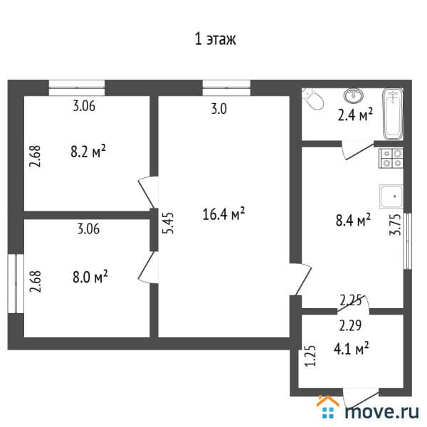 В доме: две спальни, гостиная, кухня, совмещенный санузел.
