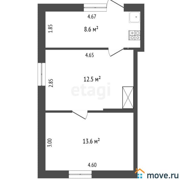 ?Площадь – 34.7 кв. м.