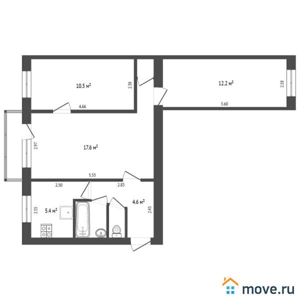 Три комнаты, гардеробная, балкон, раздельный санузел.