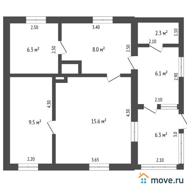 ?В доме три комнаты: зал, две спальни, проходная комната, кухня, совмещенный сан. узел.