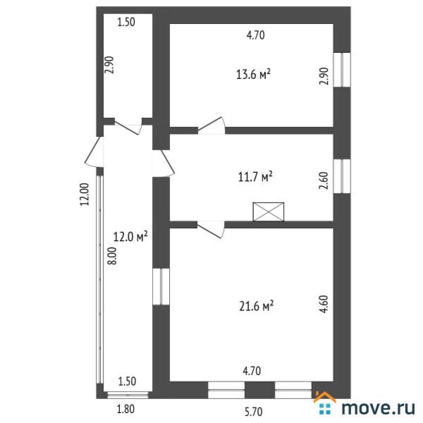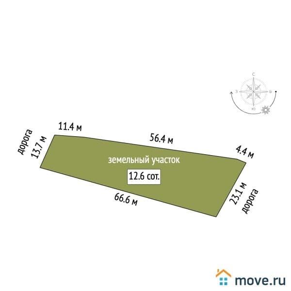 Площадь дома – 63.3 кв.м, земельный участок - 12 соток.