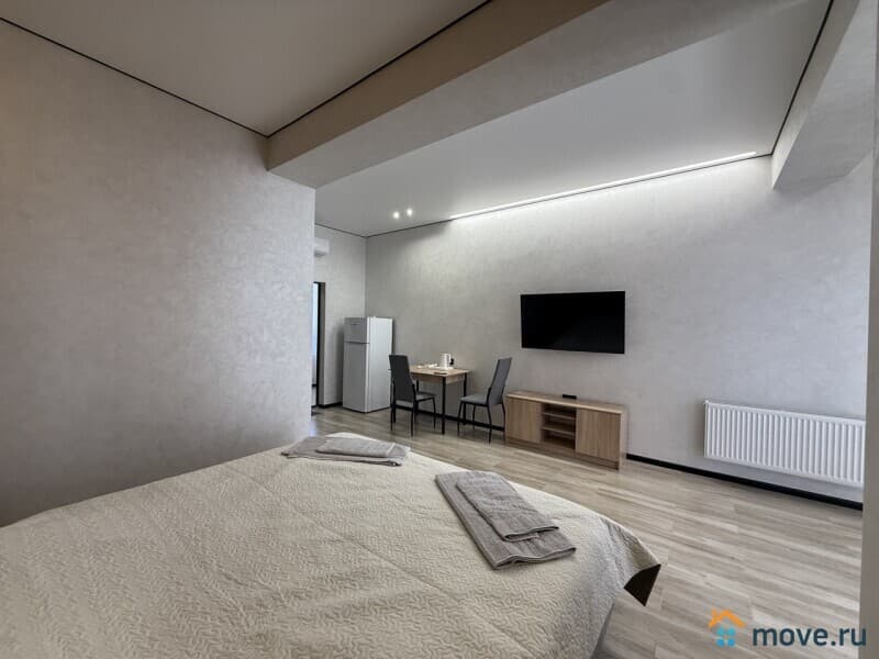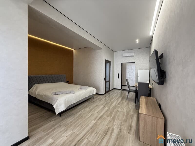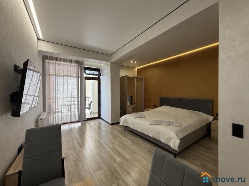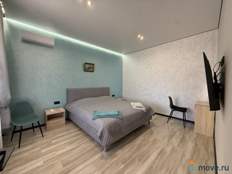 На территории два корпуса, один из них на 8 однокомнатных номеров, из них: 4 номера по 21,7м2, и 4 номера по 31,6 м2 + 9м2 терраса, и большой номер для хозяев площадью 149 м2 + 18м2 терраса.