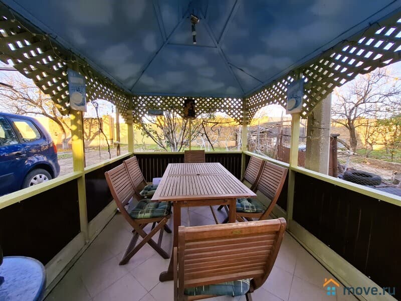 Участок 8 соток, в собственности. Выходит на трассу до Песчаного. На участке много фруктовых деревьев, различные сорта винограда, ягодные кустарники, цветы, есть деревянная беседка, колодец с артезианской водой.