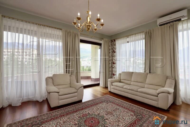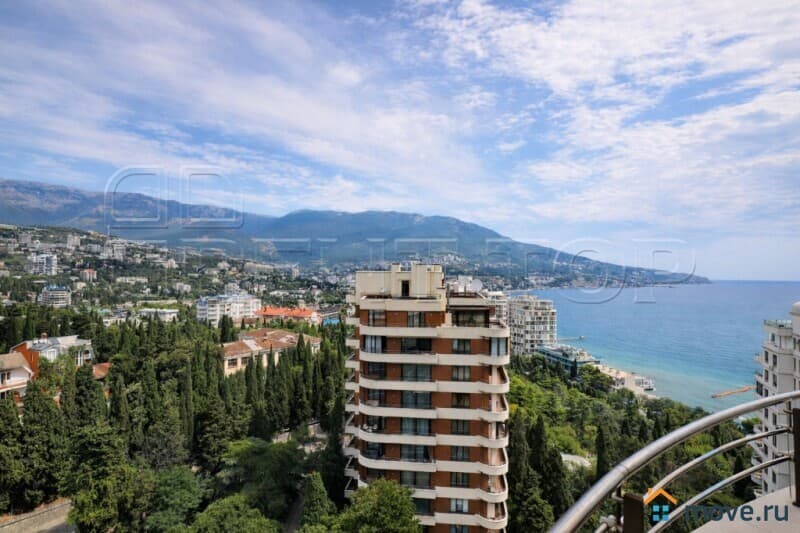 Квартира с террасой и панорамным видом на Ялтинский залив расположена в ЖК «Омега» в Приморском парке Ялты. До моря и пляжной зоны около 260–300 метров пешком. ЖК «Омега» находится в центральной части Ялты, в зелёной территории Приморского парка рядом с набережной.
